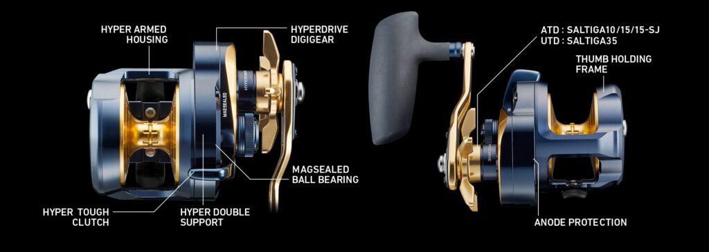 また、過酷な塩害環境でも作動する「HYPER TOUGH CLUTCH」を搭載し、長期使用でも安定したパフォーマンスを発揮します。操作面では、親指の位置を自然にオフセットする「サムホールディングフレーム」を採用し、軽快な巻き上げとジグ操作を可能にしています。