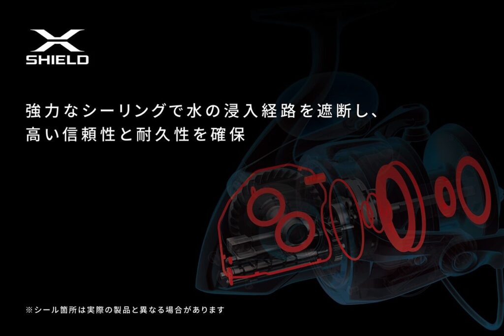 HAGANEボディがリール全体をしっかりと支え、強い負荷がかかってもたわみを最小限に抑えるため、大型魚とのファイトでも安心です。さらに、防水構造にはシマノ独自の「Xプロテクト」を採用。